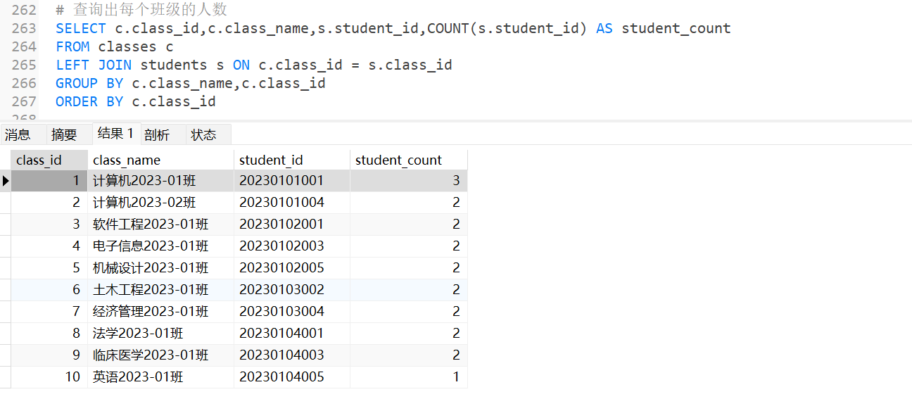 class_id INT AUTO_INCREMENT PRIMARY KEY, -- 班级ID,主键