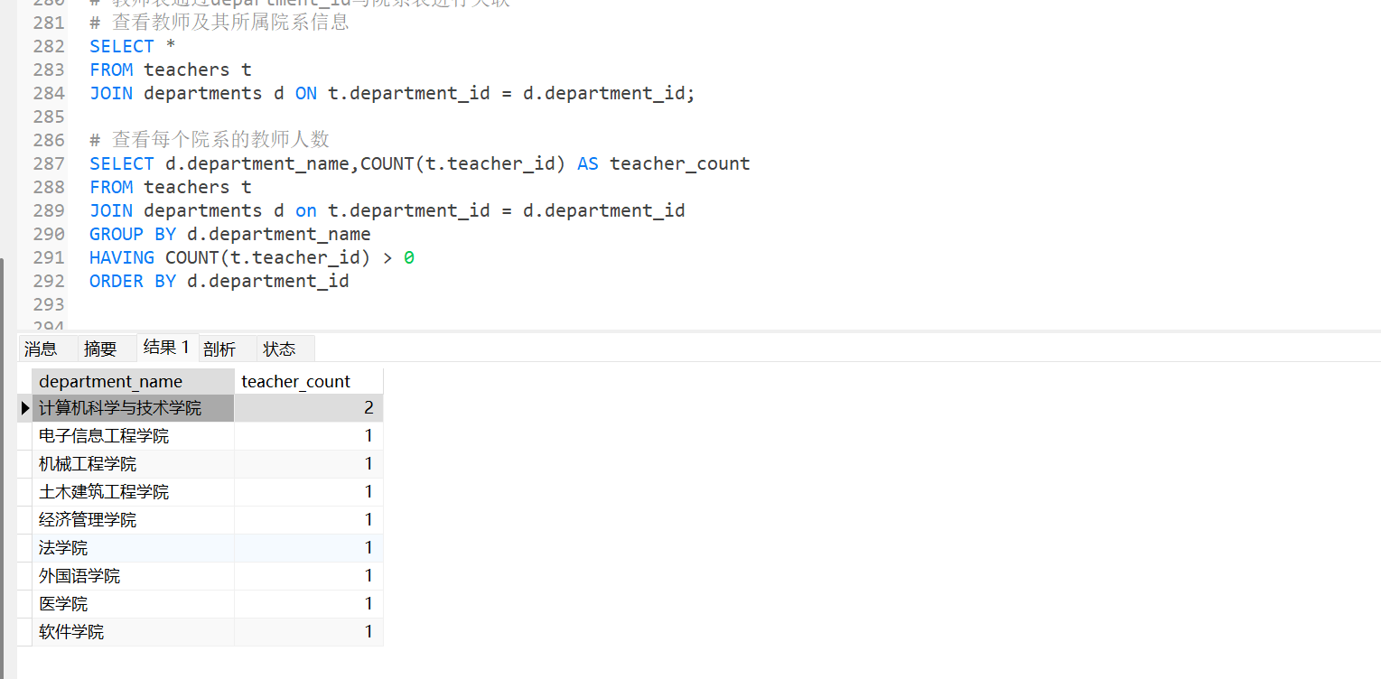 department_name VARCHAR(50) NOT NULL UNIQUE, -- 院系名称