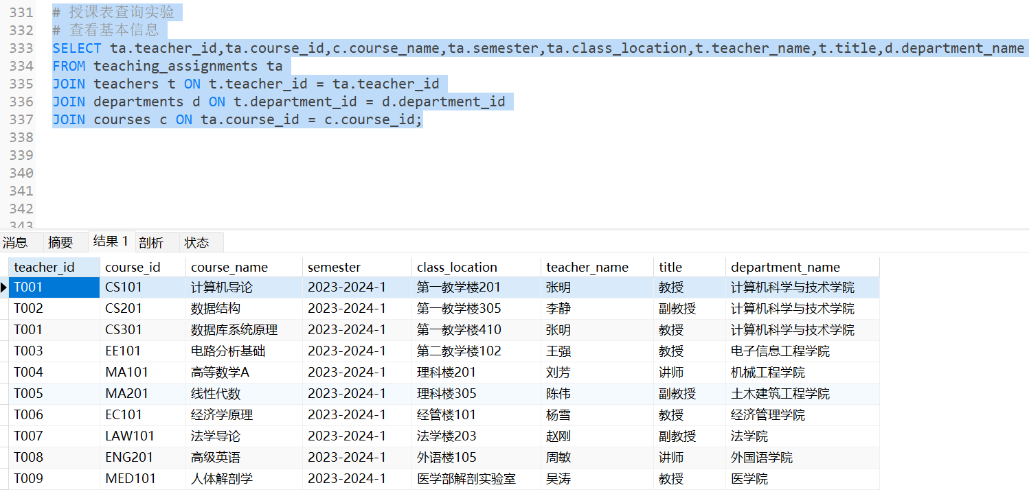 - 教师信息:工号、姓名、性别、职称、所属院系、联系方式等。