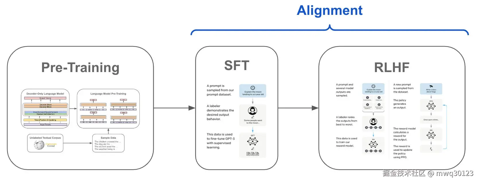 - 在推理(Inference)时,用户会提供完整的指令(Prompt)。模型唯一的工作就是从指令的末尾开始接着生成回应。