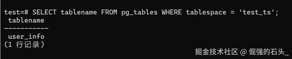 SELECT tablename FROM pg_tables WHERE tablespace = 'new_test_ts';