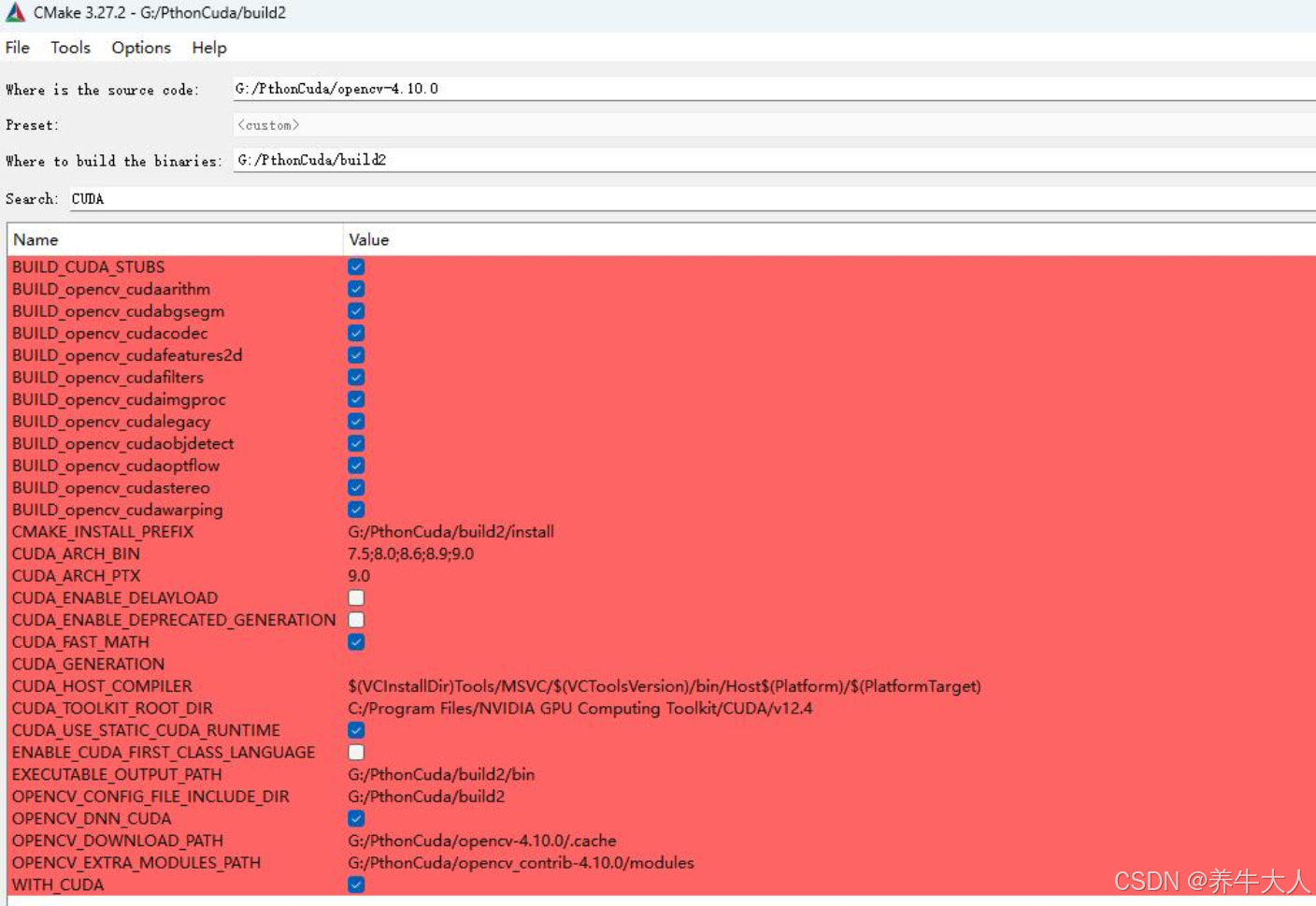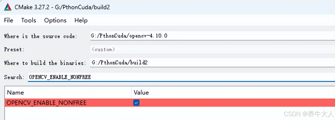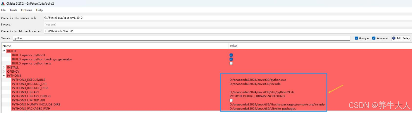 当用vs2022 编译opencv4.10时,cmake里面找不到BUILD_opencv_python3这个选项,后来换成vs2019后就出现了,这个编译的麻烦就在于各个库和工具之间的版本匹配。