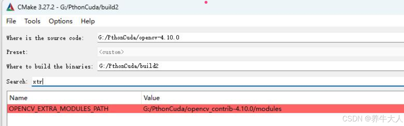 contrib功能设置OPENCV_EXTRA_MODULES_PATH设置对应路径