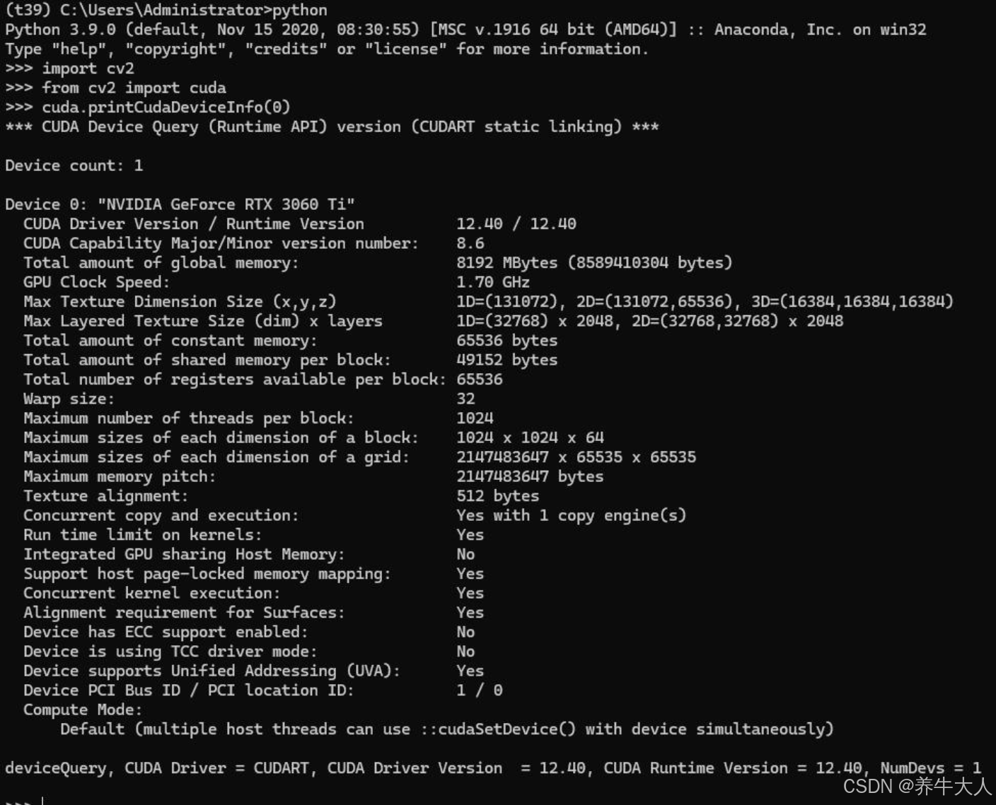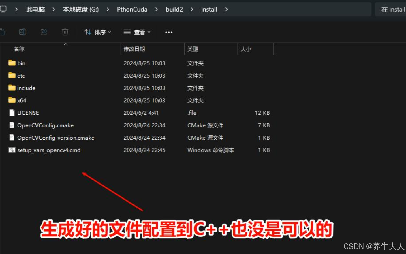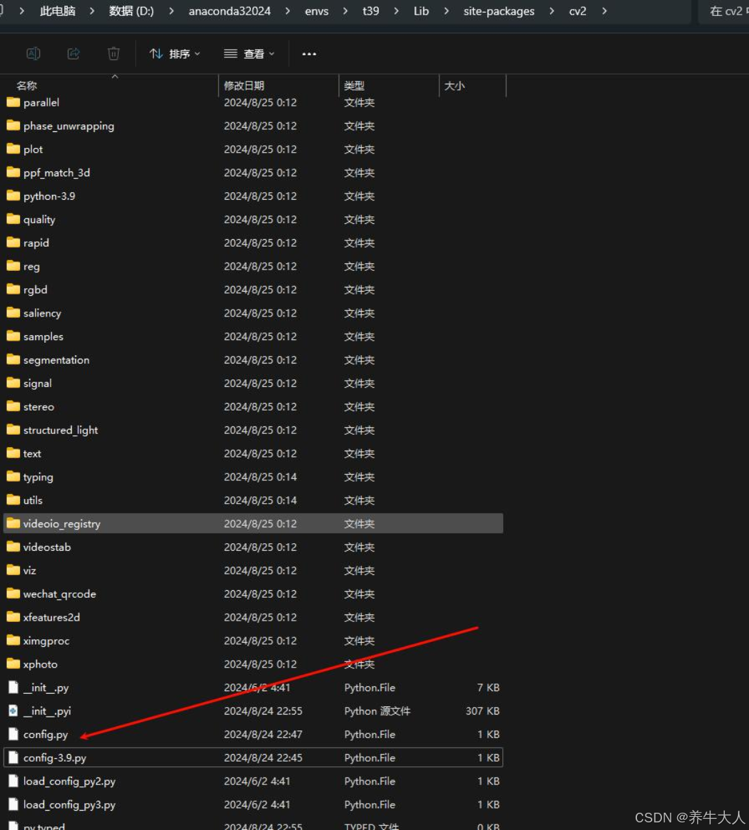 生成INSTALL后,D:\anaconda32024\envs\t39\Lib\site-packages\cv2目录下面会有文件产生,注意python环境中不要去pip install opencv-python了,因为cv2已经在编译中生成了