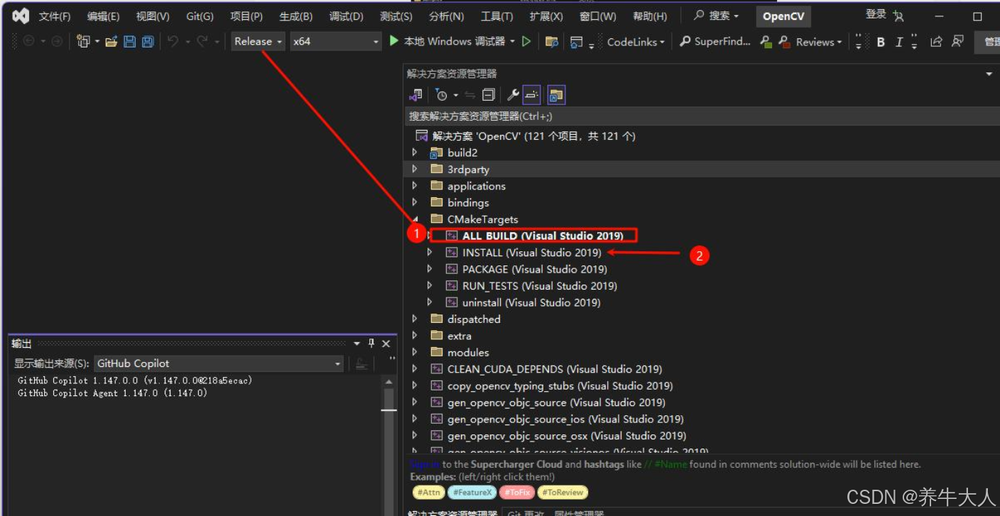 模式选择Releasex64(根据需要)生成,完成之后没有报错,再右键INSTALL点生成