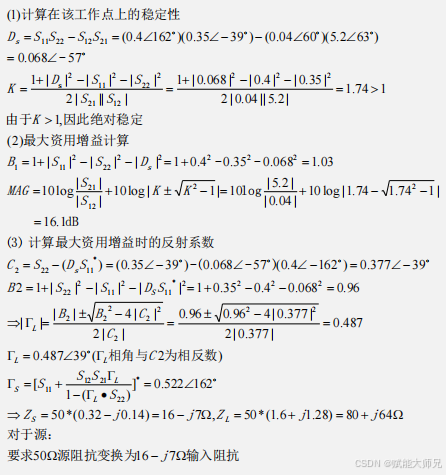Γin = Γs*且Γout = ΓL*时,实现最大功率传输和最大增益。 -