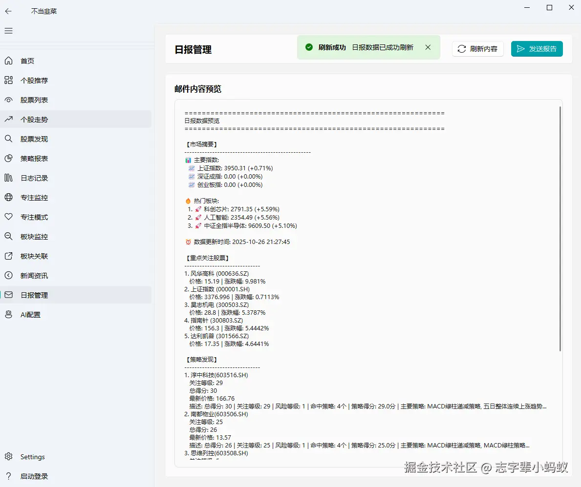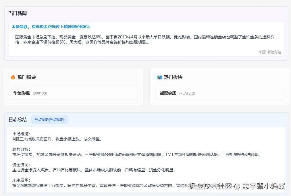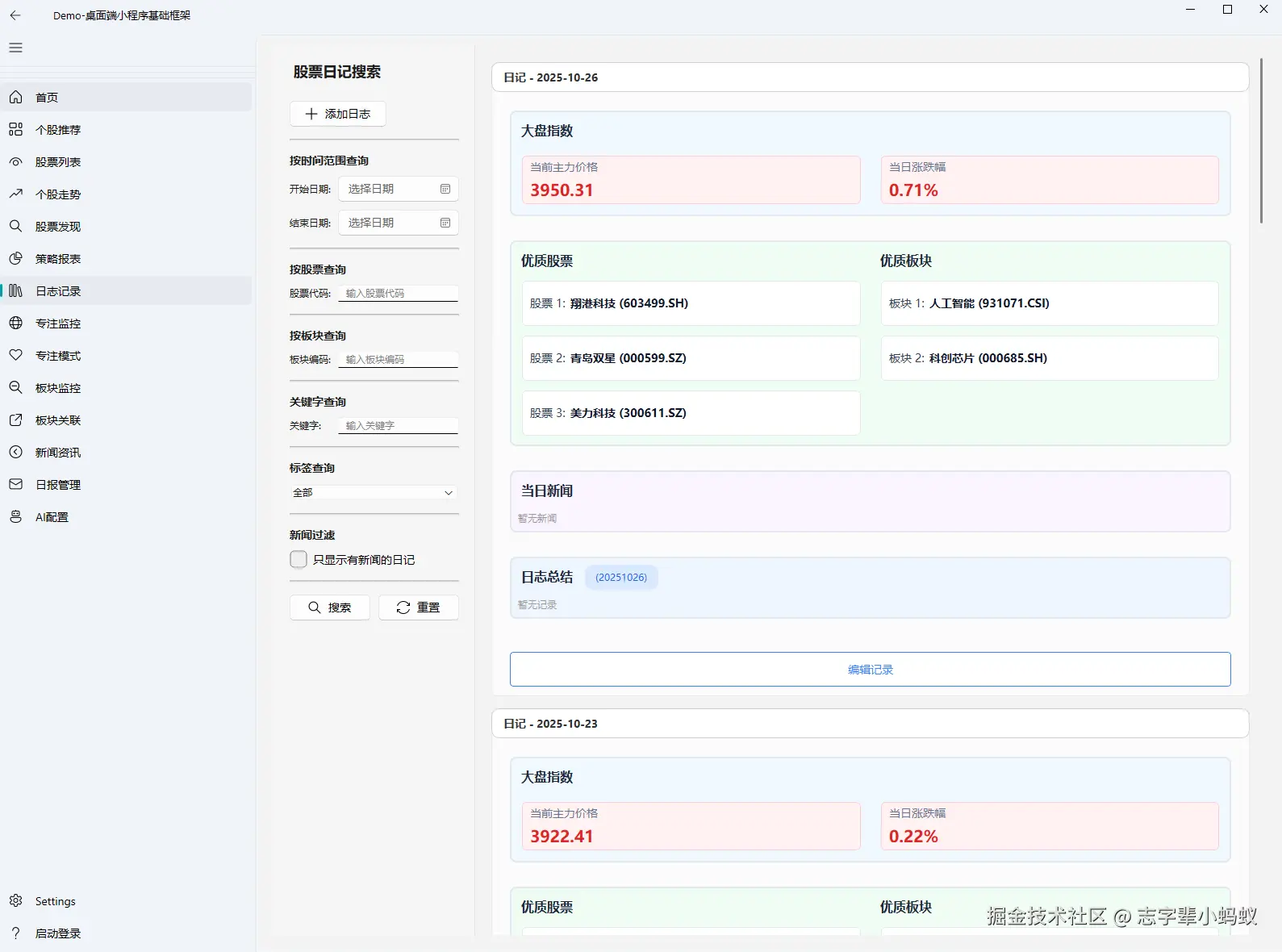 目的 : 每天会查询最新的股票新闻 ,记录当天的股市信息 ,优势股票 ,用于后市的分析