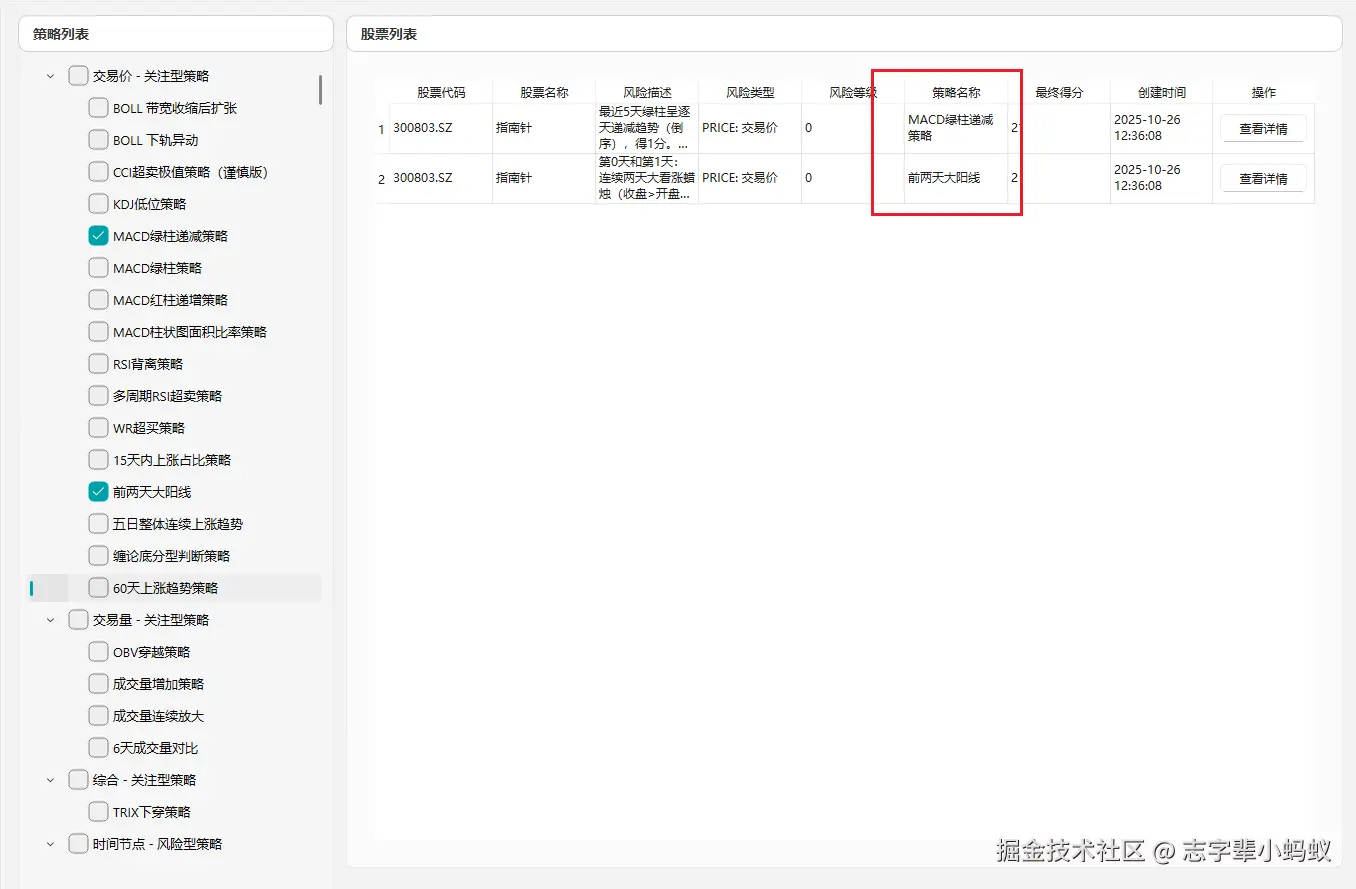 - 第三步 : 对符合策略的股票进行二次分析 ,排除掉高风险 ,低收益的股票 ,减少误判