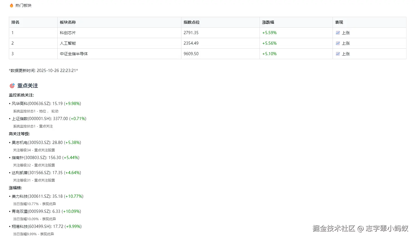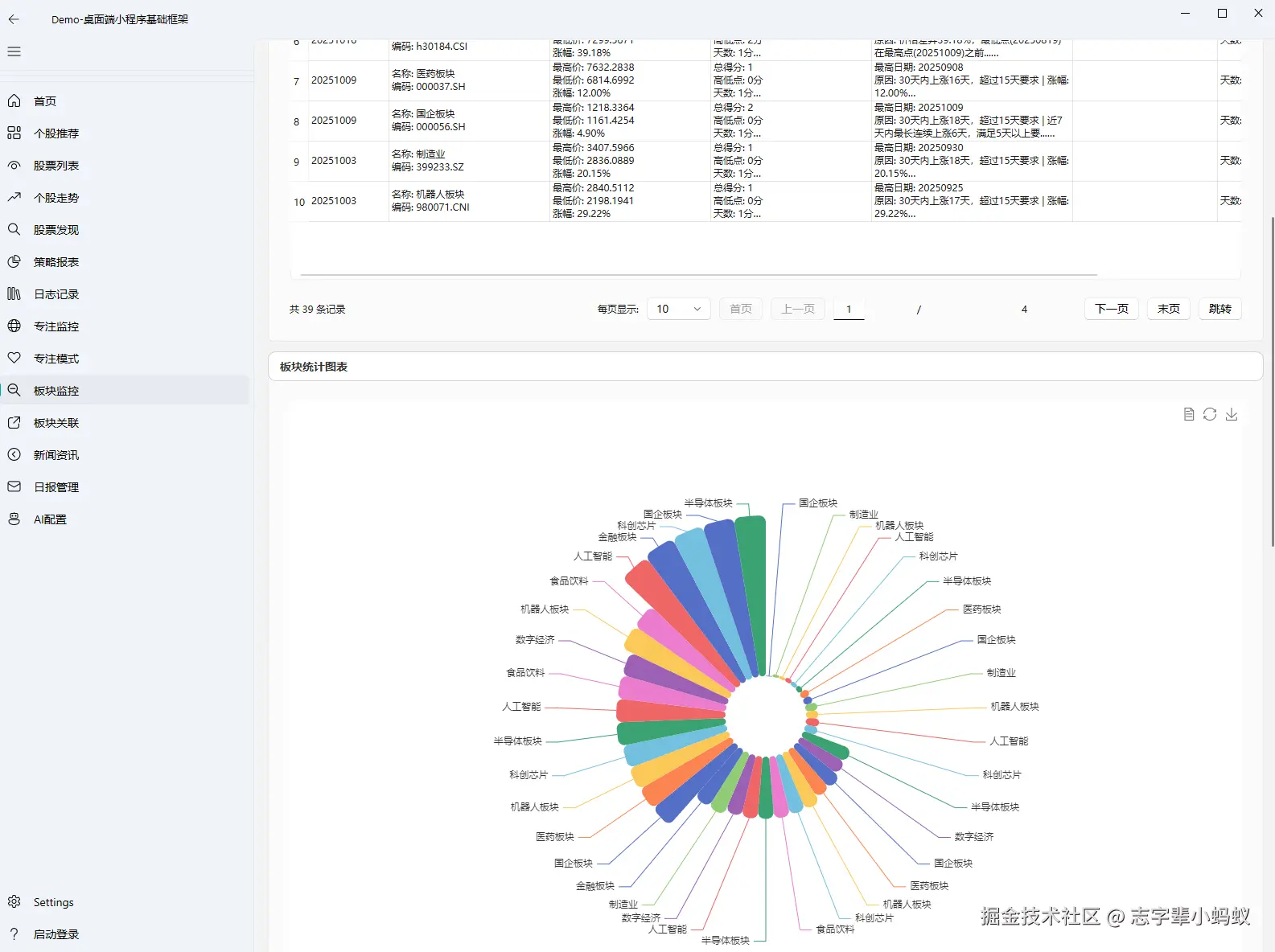 目的 : 板块轮动才是 A 股永恒的主题 ,该模块用来监控这段时间的优势板块 ,以及已经沉淀了一段时间的股票