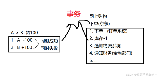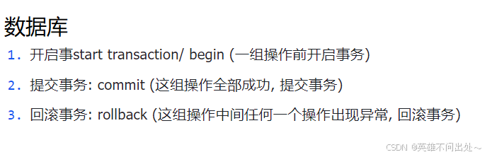 - 事务:同时执行多个操作,要么同时成功,要么同时失败