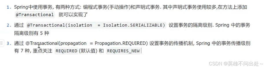 - [Spring 声明式事务 @Transactional](#Spring 声明式事务 @Transactional)