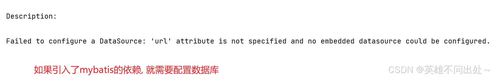 引入MyBatis依赖之所以感觉"需要"配置数据库,是因为Spring Boot的自动配置机制被触发,它试图为你创建一个完整可用的MyBatis环境,而这个环境的基石------数据源(DataSource)------必须由你通过配置文件来提供必要的信息。