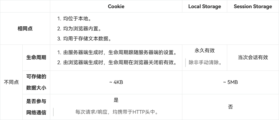 - Cookie、LocalStorage和SessionStorage的异同点?