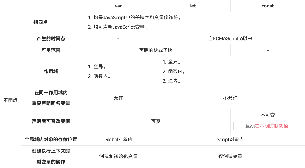 var、let和const变量的异同点?