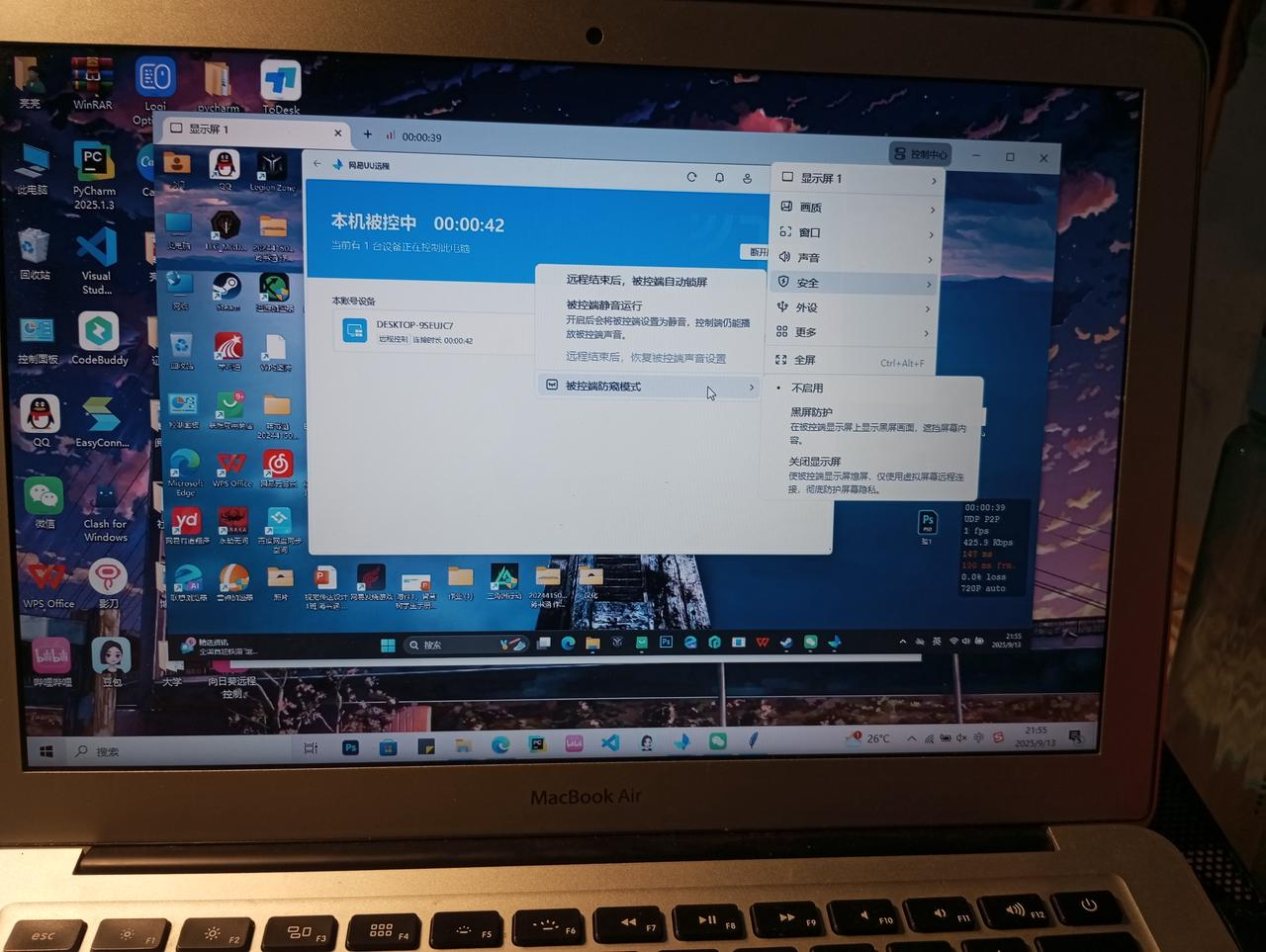 针对"公共场所远程办公/游戏"的隐私痛点,它主打的就是"简单直接的防窥",一开启,被控端直接黑屏,屏幕内容立马藏起来,在办公室、公共场所这些地方,就不怕内容泄露了。操作简单,零难度。