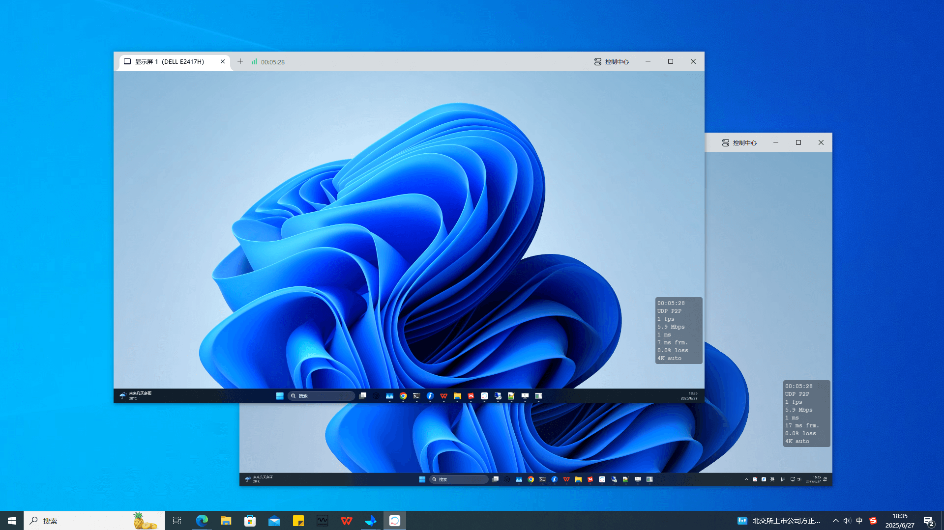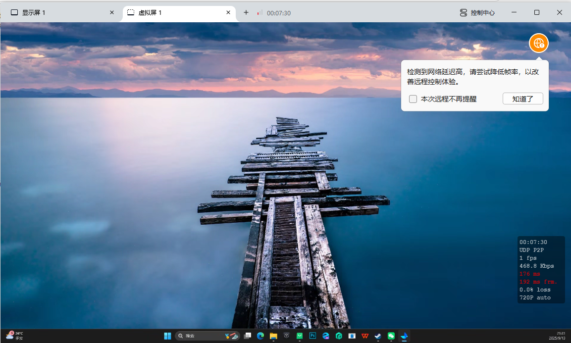 - 就可以打开咱们的虚拟屏了,可在被控端创建虛拟屏,将虛拟屏拖至主控端副屏,充分利用主控端多屏效能。
