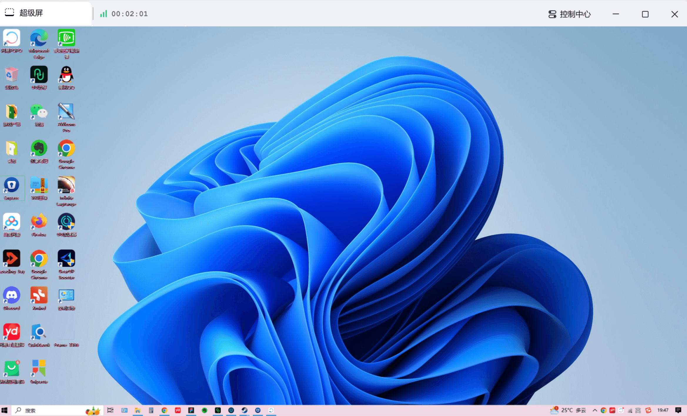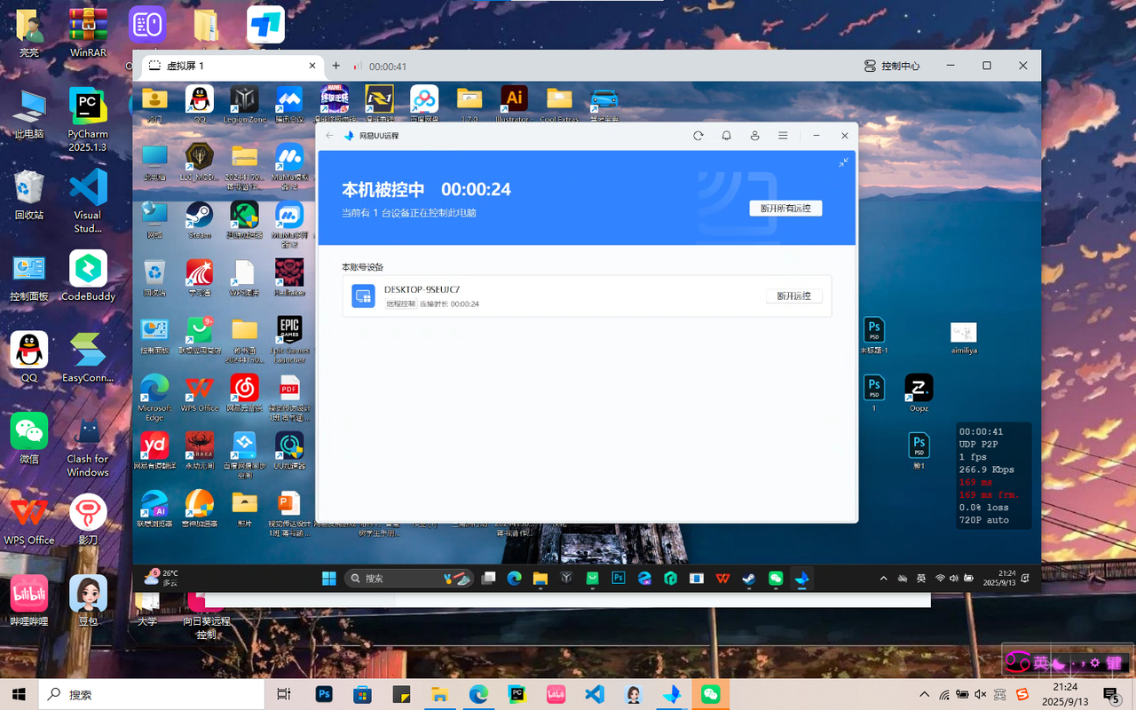 - 创建超级屏后,无论被控端有几个屏幕或者创建过几个虚拟屏,都会全部汇总成唯一的超级屏,不同显示屏上的图标、进程都会汇总到同一个窗口。