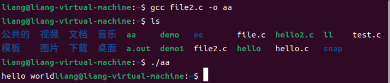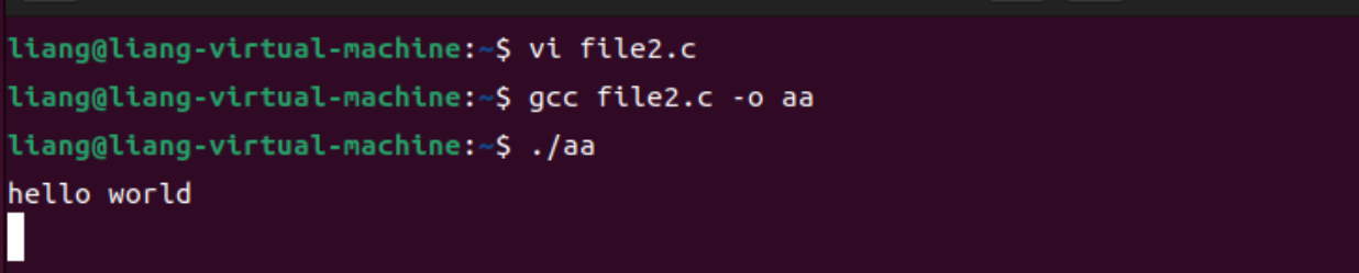可以看到"hello world"被成功地打印了出来。那如果我们将\n给删掉会怎么样?