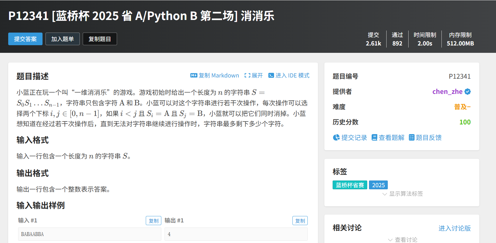 P12341 [蓝桥杯 2025 省 A/Python B 第二场] 消消乐