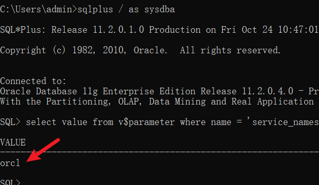结果需与 listener.ora 的 GLOBAL_DBNAME 和 tnsnames.ora 的 SERVICE_NAME 一致。