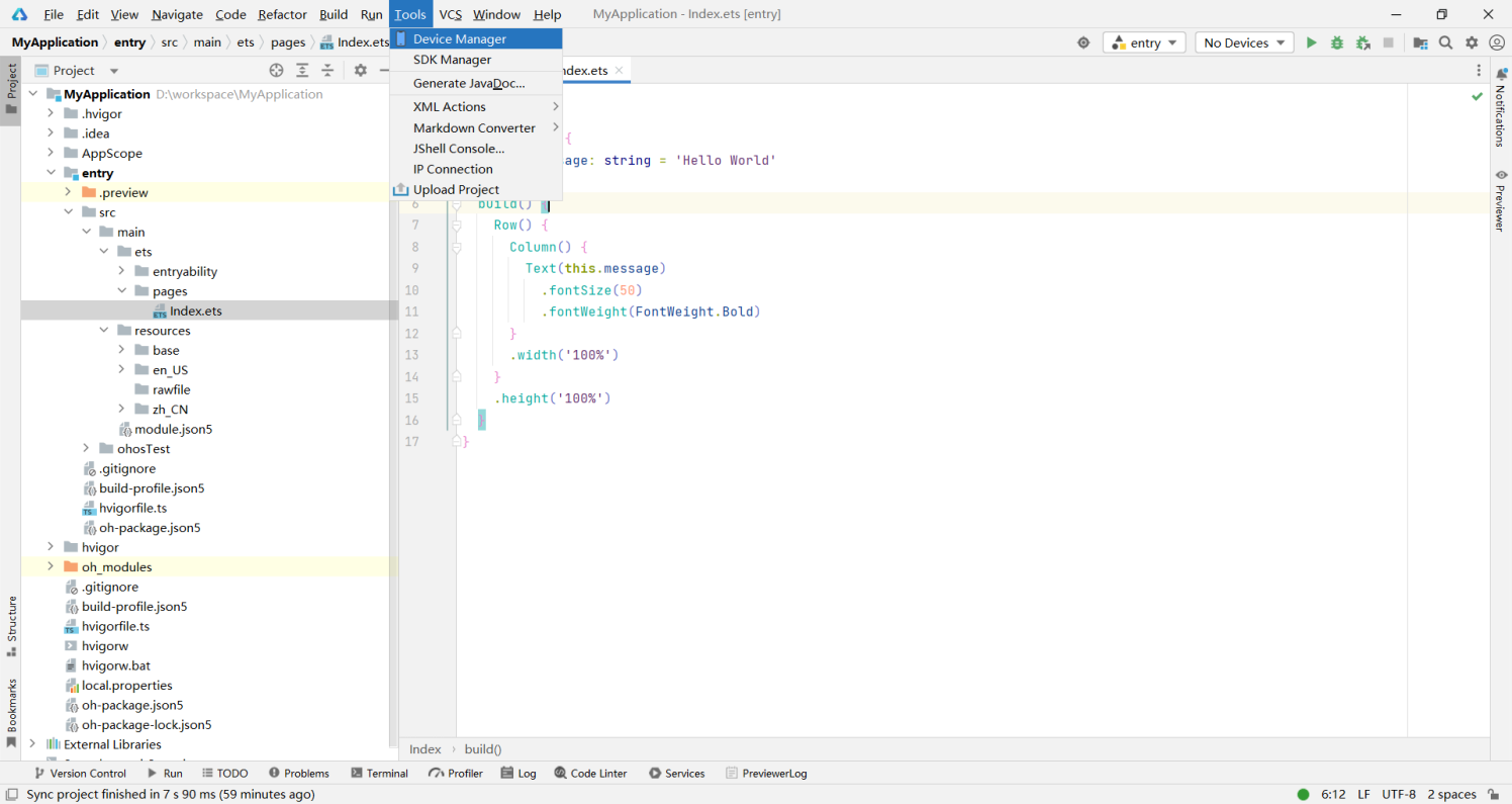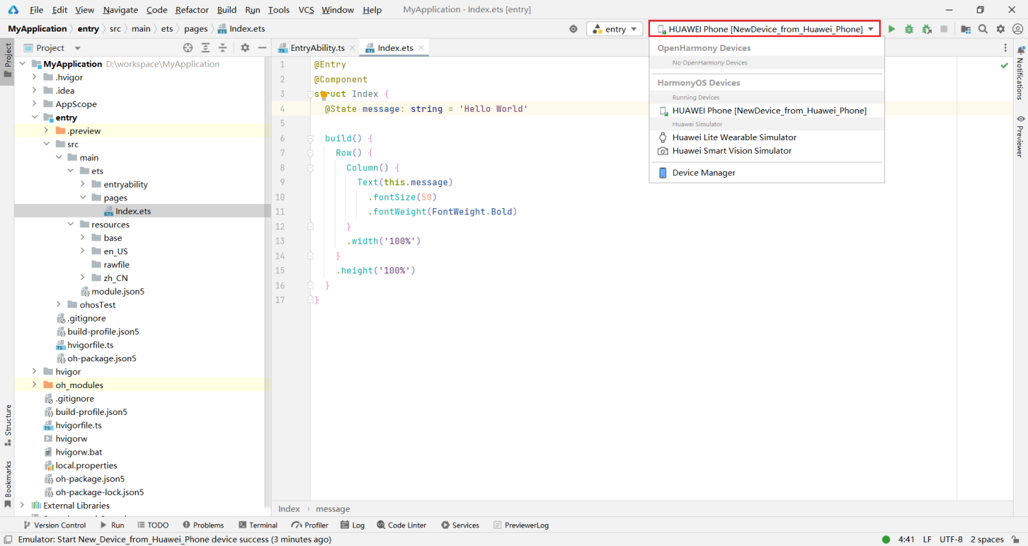 DevEco Studio提供了多种方式用于运行项目,包括预览、模拟器和真机运行。下面逐一演示