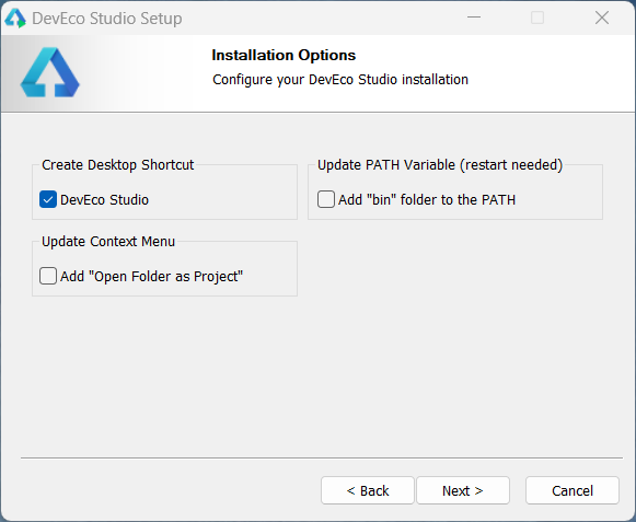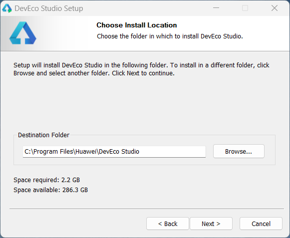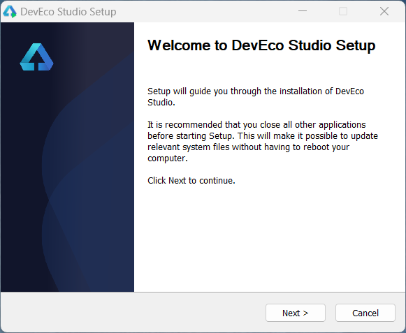 2 解压之后双击deveco-studio-xxx.exe,进入安装向导,点击next即可