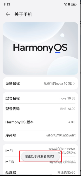 1准备一台装有Harmony OS系统的手机,系统版本最好为4.0.0及以上,系统版本可在设置/关于手机中查看
