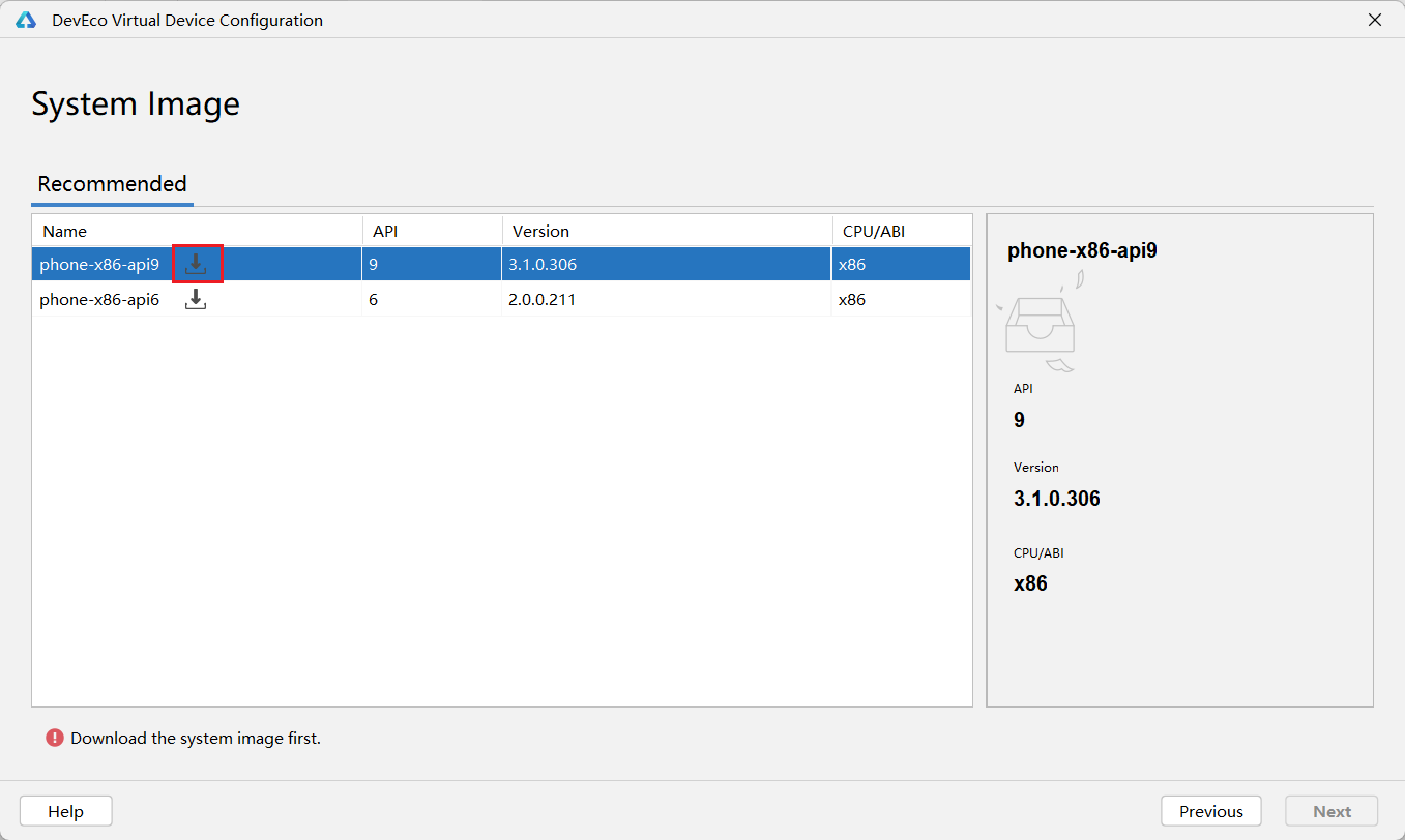 6下载系统镜像,注意选择api9版本