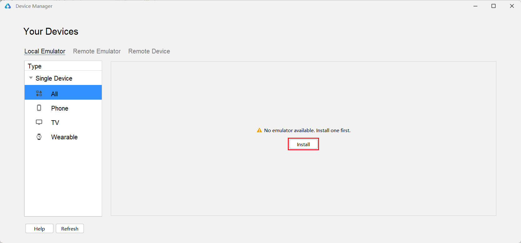 Previewer预览器主要用于查看界面UI效果,如需对项目进行更加深入的测试,可以使用模拟器运行项目。初次使用需要先安装模拟器,安装步骤如下
