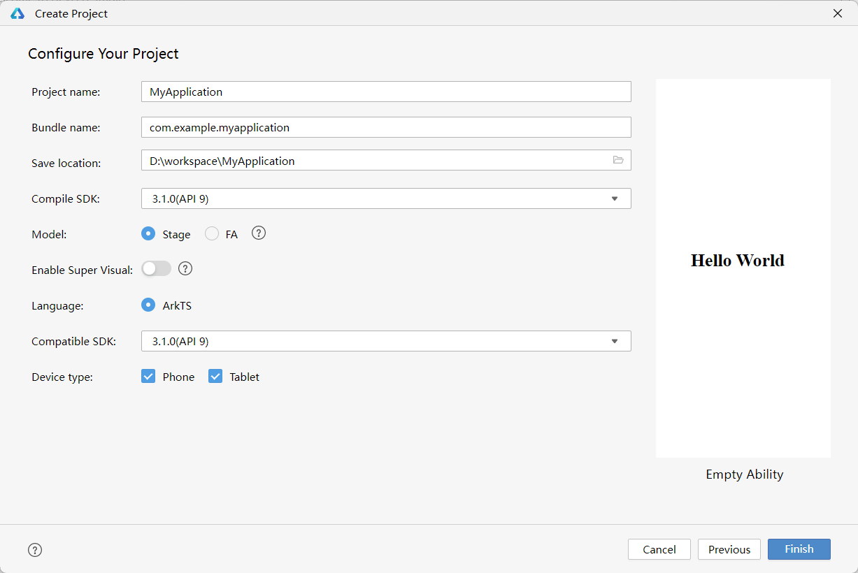 下面我们创建第一个鸿蒙应用项目