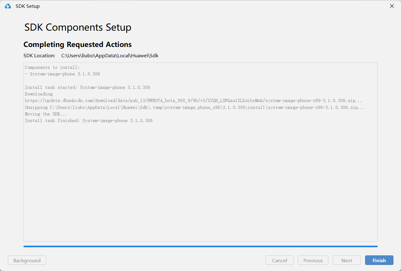 3点击Install后,会首先下载模拟器相关的SDK,下载完成后点击Finish即可。