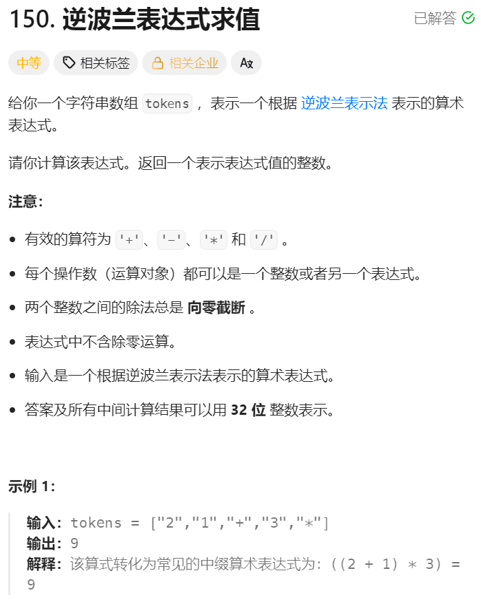题目链接:https://leetcode-cn.com/problems/evaluate-reverse-polish-notation/