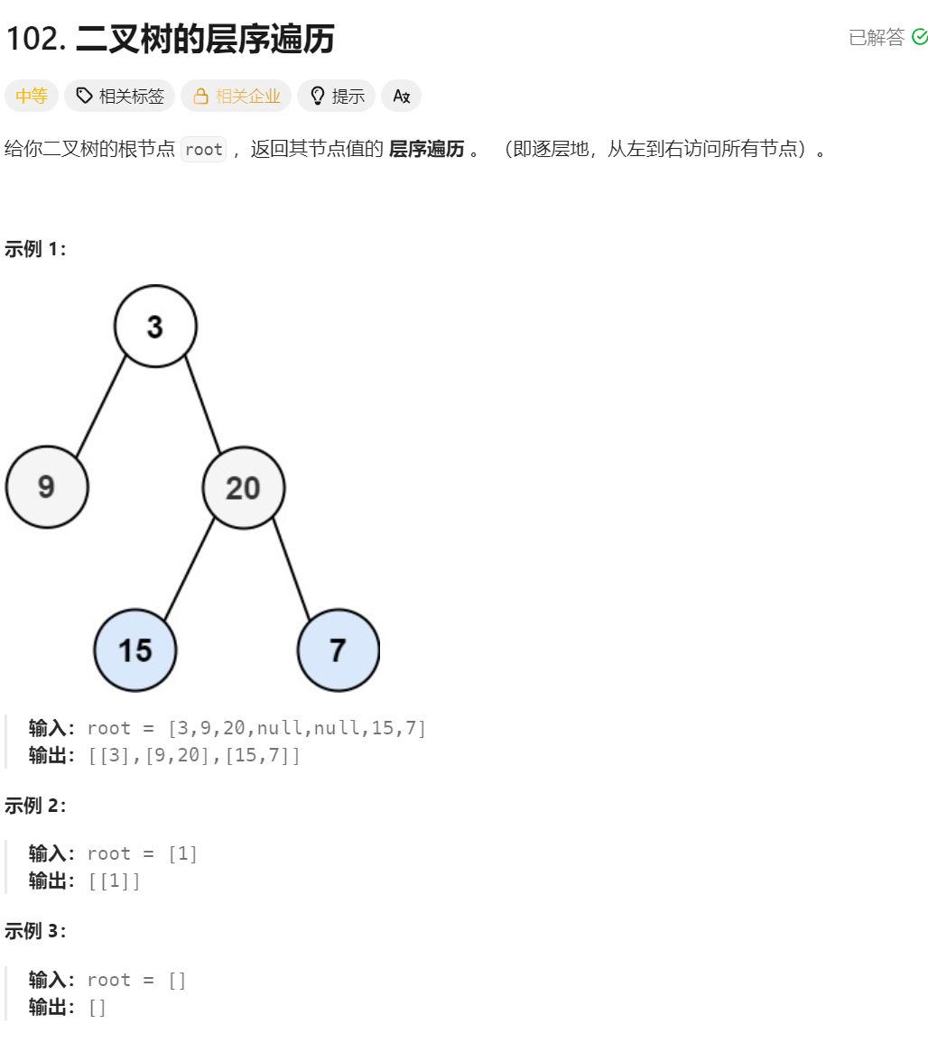 q来辅助层序遍历,levelSize用于记录每一层的节点数量。如果根节点root存在,就将其入队,并将levelSize初始化为1(根节点所在层只有 1 个节点)。 - 外层循环:只要队列不为空,就持续进行层序遍历。