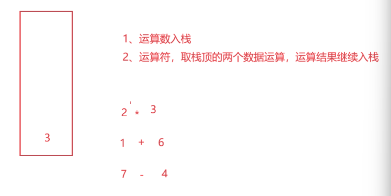 2 当遇到运算符时,取栈顶的两个数据运算,运算结果继续入栈