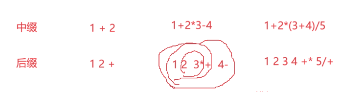在逆波兰式运算中,使用的就是后缀运算方法,但是式一个排列好的运算符优先级。