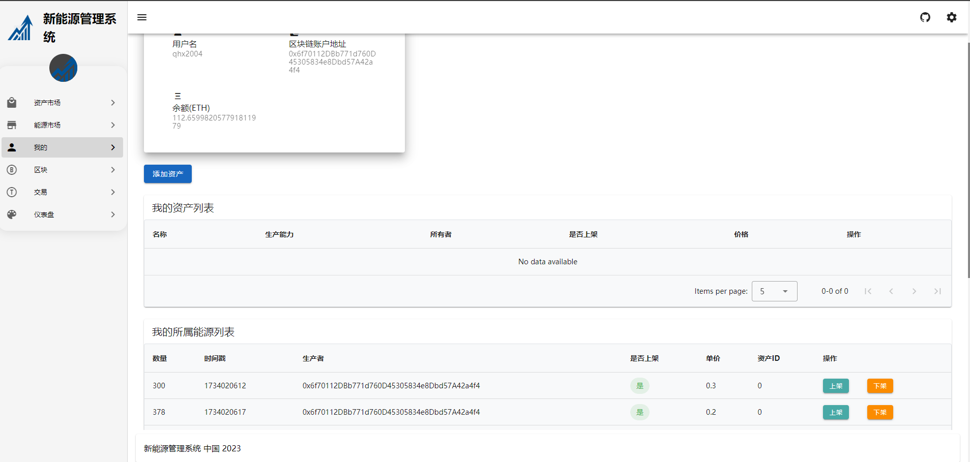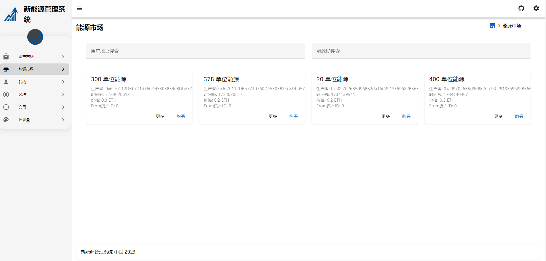 - 功能:基于资产所有者生成能源记录、将能源挂牌出售、部分购买(拆分能源条目)、交易记录保存