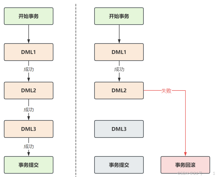 事务是把⼀组SQL语句打包成为⼀个整体,在这组SQL的执⾏过程中,要么全部成功,要么全部失