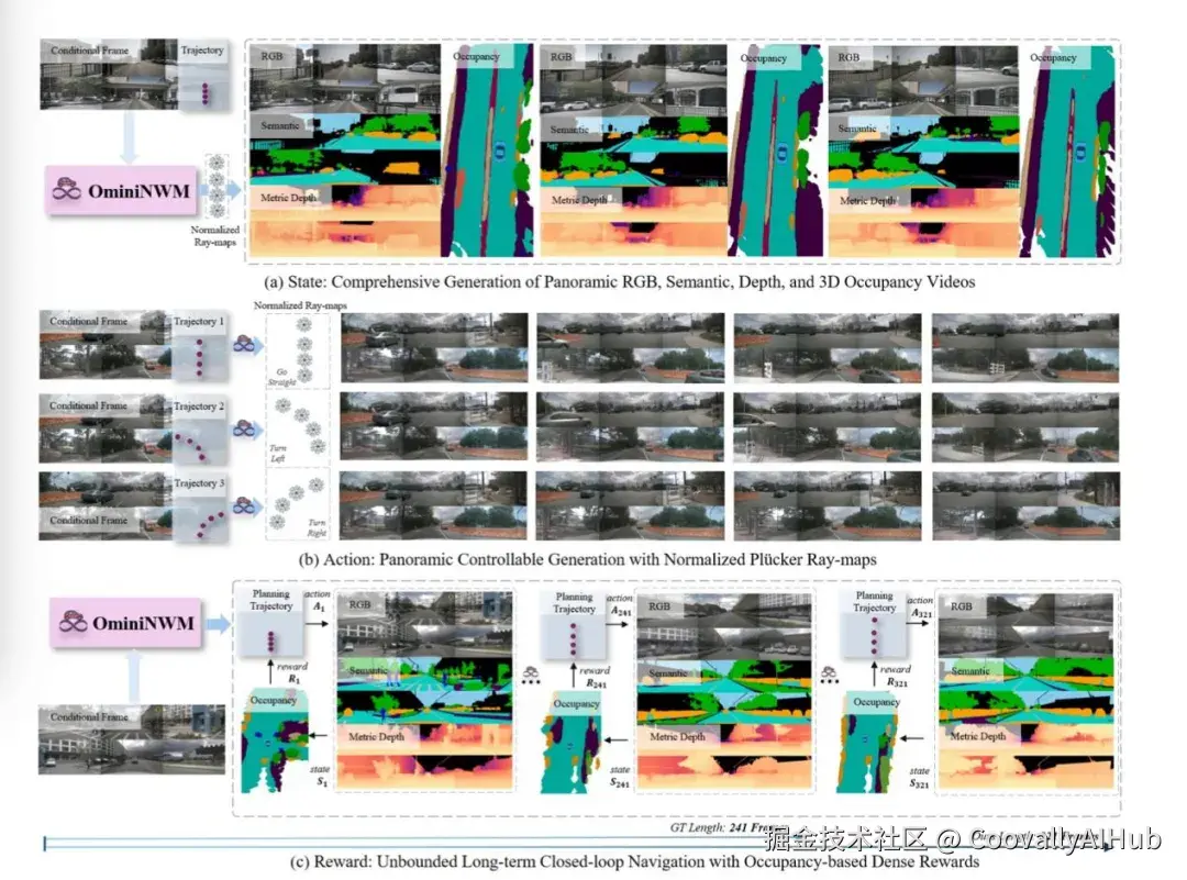 OmniNWM的创新之处在于将状态生成、动作控制、奖励评估三者无缝集成在一个统一框架中: