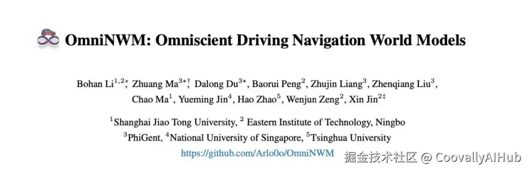 自动驾驶技术的发展正面临着一个关键瓶颈:如何在虚拟环境中进行高效、安全的训练与测试?传统的仿真平台虽然能够提供基本的测试场景,但在真实性、复杂性和交互性方面仍存在明显不足。近日,上海交通大学、东方理工大学、PhiGent Robotics、新加坡国立大学和清华大学的联合团队提出了OmniNWM(Omniscient Driving Navigation World Models) ,为这一挑战提供了全新的解决方案。