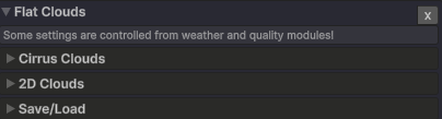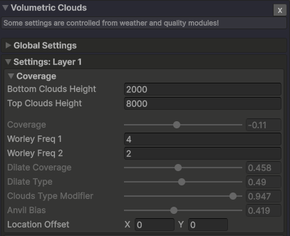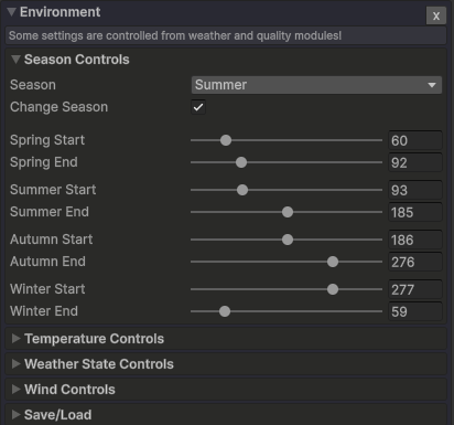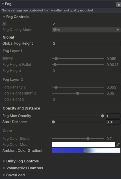 天气模块包含一个天气类型列表,这些类型将控制大多数其他模块的设置。天气类型可以平滑过渡地自由更改。