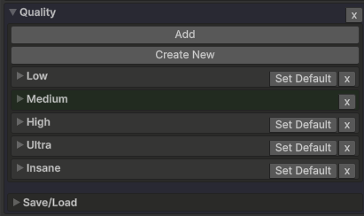 Create New在您的项目中创建一个新的 EnviroQuality 预设。 - 点击