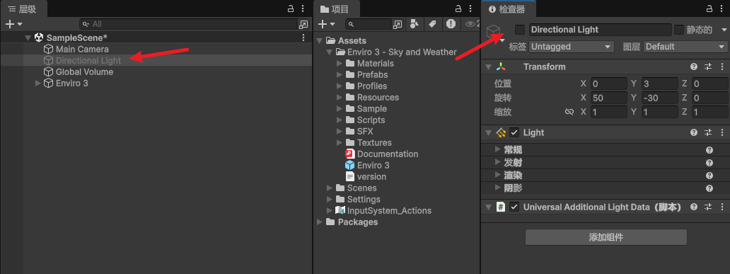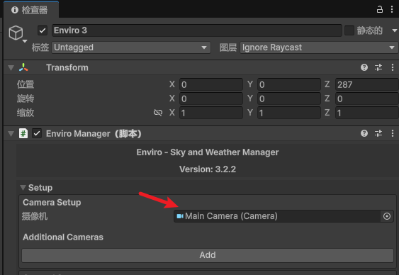 Enviro 3对象,在Enviro Manager->Setup->Camera字段中指定您的主摄像机。) - 3、您可能需要检查场景中旧的方向光并将其停用。