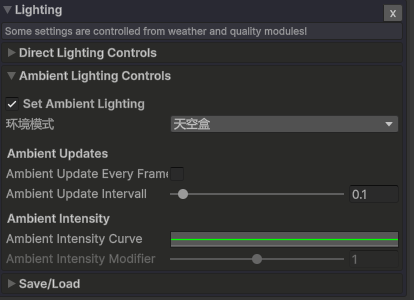 此模块控制场景光照,如方向性的太阳光和月光、环境光以及反射探针。