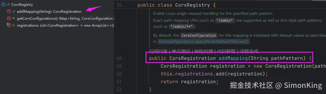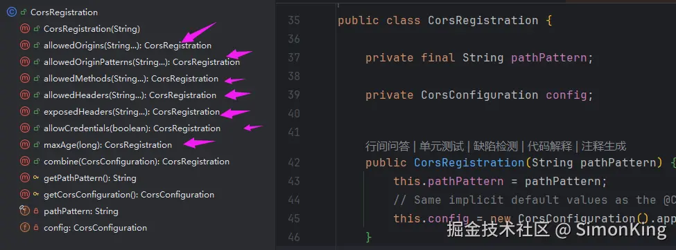 详细的跨域设置需要在org.springframework.web.servlet.config.annotation.CorsRegistration里面设置。