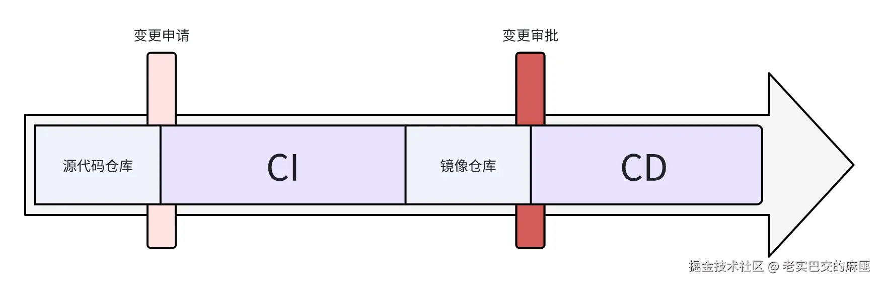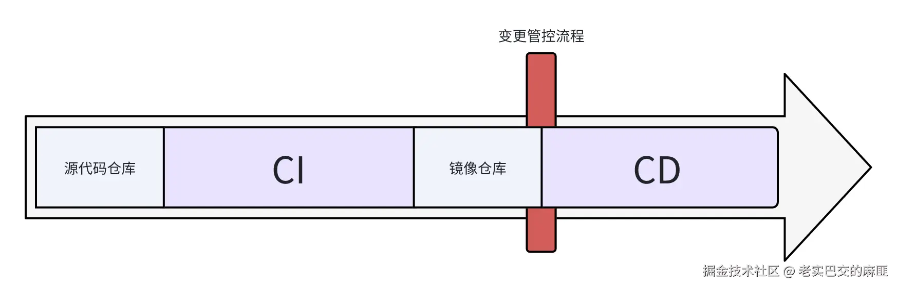 更完善的变更管控应该是完全自动化的:CI 与 CD 在流程上是分离的,只要变更流程放行,CD 则自动化执行,实现审批即执行。