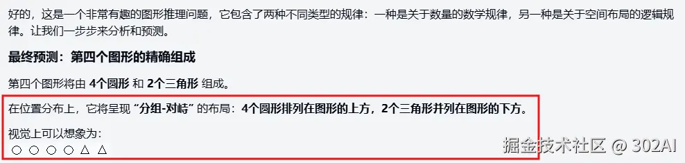本次测评使用302.AI收录的题库进行独立测试。3款模型分别就逻辑与数学(共10题),人类直觉(共7题),编程模拟(共6题),以及多模态推理(共20题)进行案例测试,对应记分规则取最终结果,下文选取代表性案例进行展示。