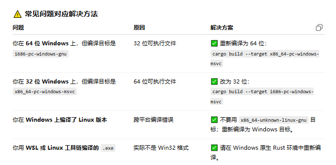 chatgpt并没有给出解决方案,只给了可能出问题的原因,如上图第三个问题:跨平台编译错误,它给出的是非linux跨平台编译,而是使用微软的编译器,担是我原来使用的就是wingw64不想使用微软的,于是确定了跨平台编译问题,刚跟新的rust因该是没有问题的,问题就是wingw64版本低的原因引起,当前wingw64中的gcc版本位8.3是几年前的版本,与新版的rustc编译时不兼容。