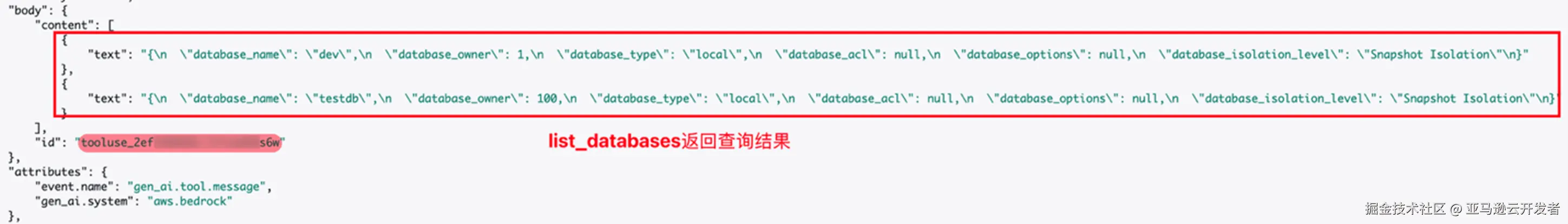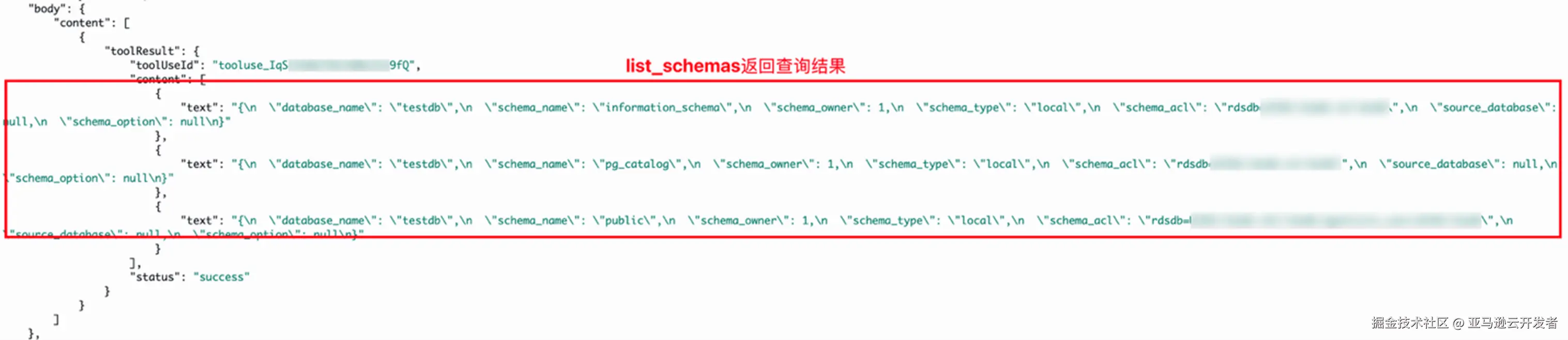 - 列出数据库:(主要使用list_databases工具)连接到选定的集群,查询系统视图发现所有可访问的数据库。