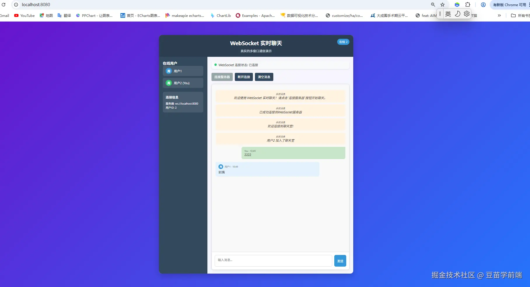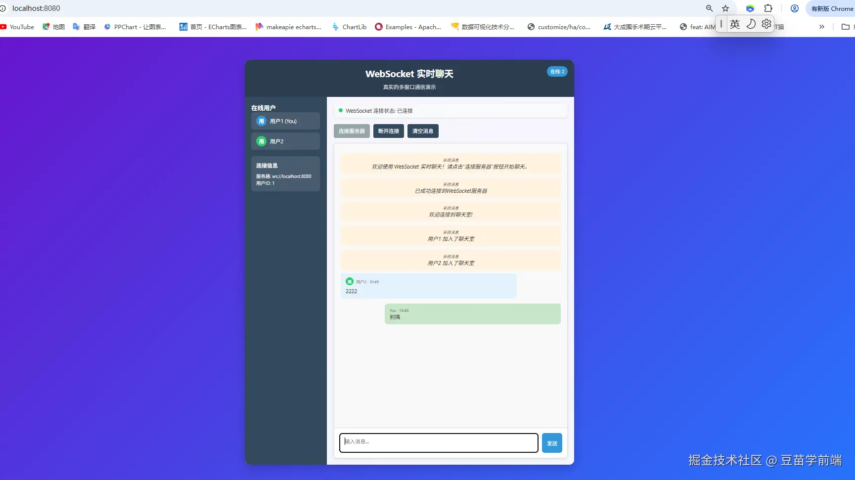 对于聊天室这类实时应用,WebSocket提供了完美的解决方案:
