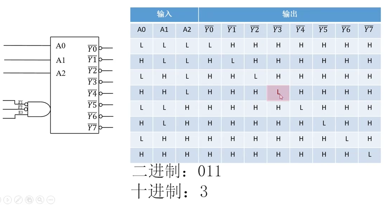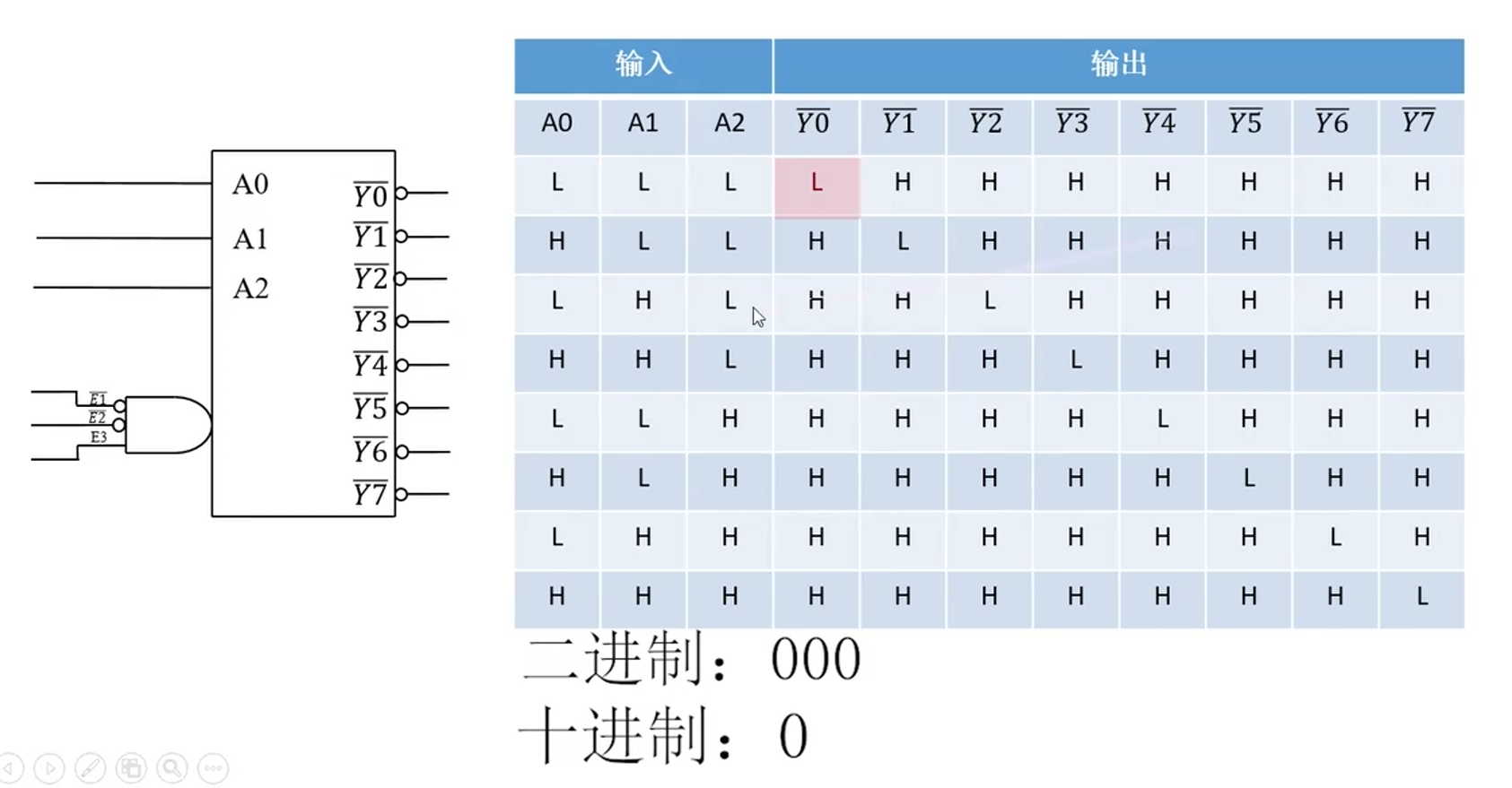 三八译码器,核心功能是通过三个输入端口控制八个输出端口